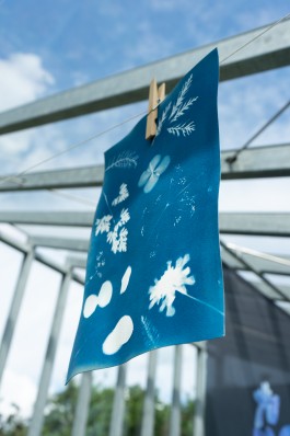 During the Beeld & Beleving festival (Bergeijk, August 1 - Sept 1, 2021), I have taken over the Diamond Greenhouse at the local Mien Ruys garden as an exhibition and meeting space to iconize biodiversity and highlight its decline in the Netherlands for the past years. Whilst showing The Butterfly Defect, a photographic project on the disappearance of the Alcon Blue butterfly, in the greenhouse I have organized cyanotype workshops using local flowers and plants from the Mien Ruys garden.